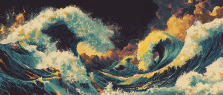 Swirling ocean waves create a dynamic and vibrant seascape background