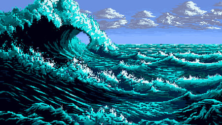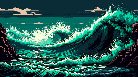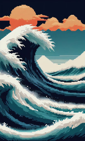Tsunami Wave In An 8-Bit Art Style. Generative AI