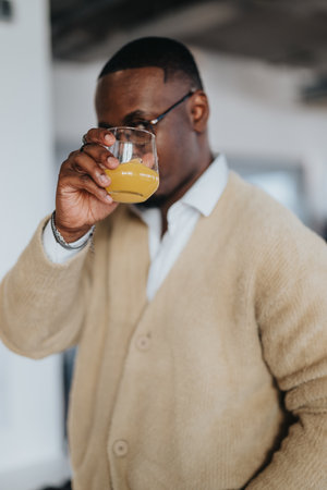 Multicultural business professional enjoying a refreshing beverage break