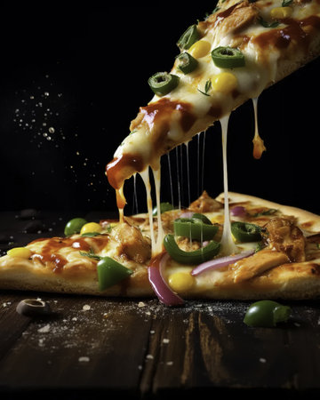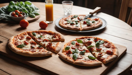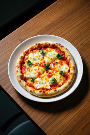 Tempting pizza presented indoors. A high quality image making by generative ai.