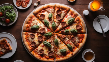 Delicious pepperoni pizza with melted cheese, sliced and ready to be enjoyed
