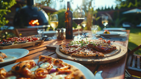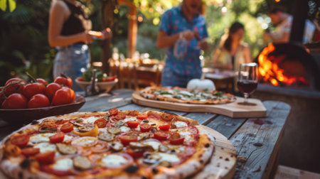 Domestic production of pizza. Preparing food for guests. Pizza party