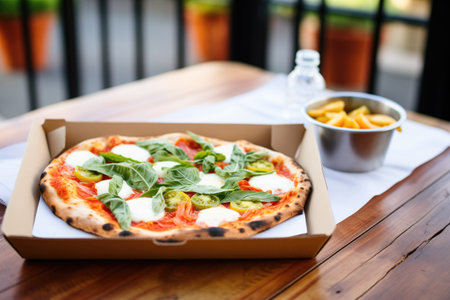 Take Away Pizza Box with Arugula, Rocket or Rucola Leaves and Avocado.