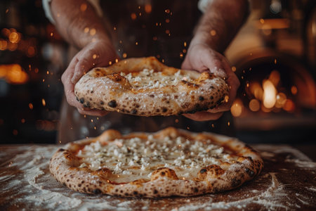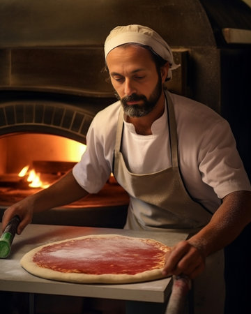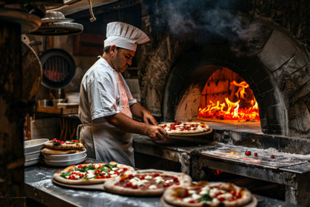 Crafting authentic Italian pizza in traditional fire oven, celebrating culinary heritage