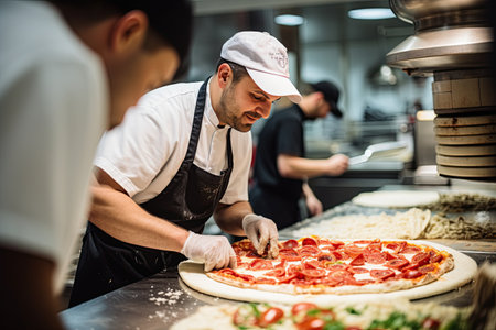 Capturing the Flavor of Venice: A Tempting Photograph of Traditional Italian Pizza Amidst Authentic Kitchen Atmosphere