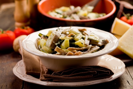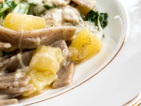 Pizzoccheri, typical dish of Valtellina cuisine, Italy