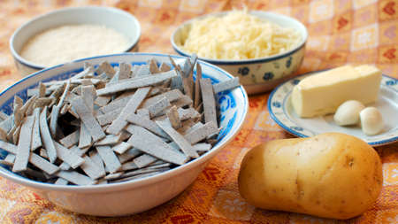 Pizzoccheri, raw pasta typical of Valtellina, Italy