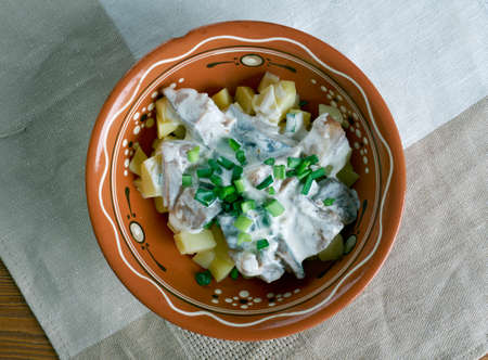 Estonian Silgu kartulisalat . salad of herring, potatoes with sour creamBaltic cuisine