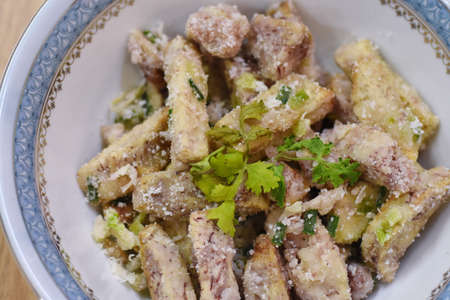Sugar Coated Taro or Crispy Sweet Snow Taro on plate