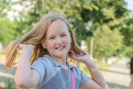 portrait of young beautiful blond girl teenager outdoor