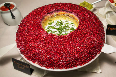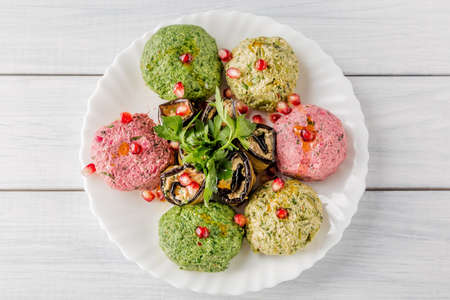 Georgian traditional food Pkhali, meal and dish with vegetables and pomegranate.Tbilisi,Georgia.