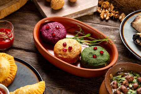 spinach beetroot pkhali assorted georgian cuisine. high quality photo