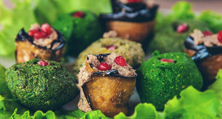 Pkhali, aubergine stuffed with walnut paste. Georgian cuisine