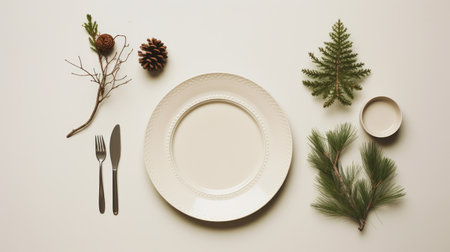 Festive flat lay with very few Christmas decor creating a minimalist look AI generated illustration