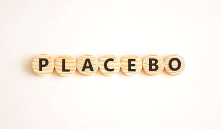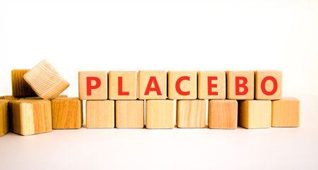 Placebo word medical symbol. Concept word Placebo on beautiful wooden blocks. Beautiful white background. Business placebo word medical concept. Copy space.