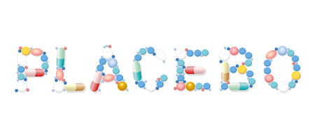 PLACEBO written with pills, tablets and capsules. Isolated vector illustration on white background.