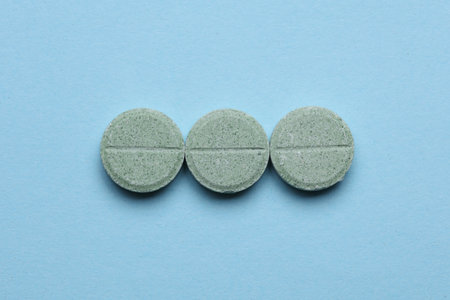 medical pills on blue background