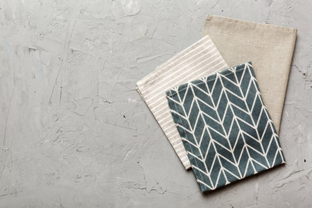 top view with blue kitchen napkin isolated on table background. Folded cloth for mockup with copy space, Flat lay. minimal style.