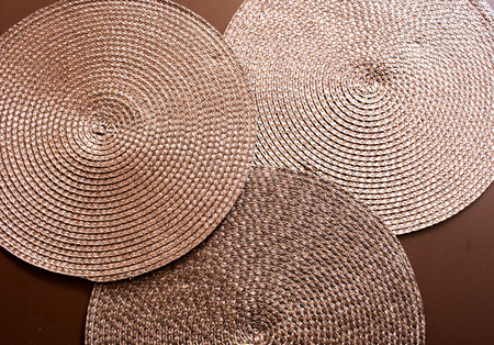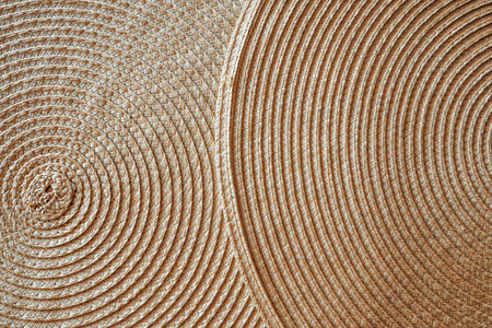 close up detail of A circle knitted fabric weaving mat or pad with round pattern for table protection from heat ,background texture.