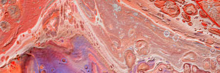Spread-out acrylic paint. Abstract background, made in the technique of fluid art. Fashionable colorful background in warm colors