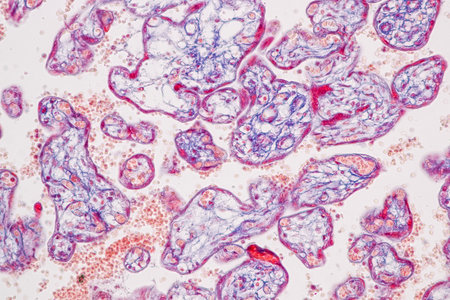 Histological Uterus human, Uterine tube human, Placenta human and Umbilical cord Human under the microscope for education.