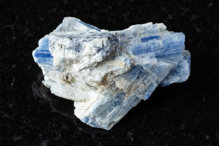 sample of unworked kyanite mineral on black granite background close up