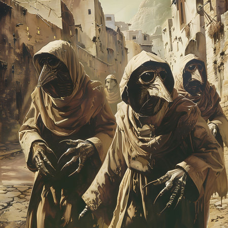 Six Individuals Dressed in Plague Doctor Costumes