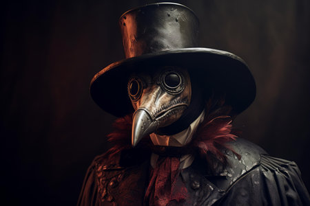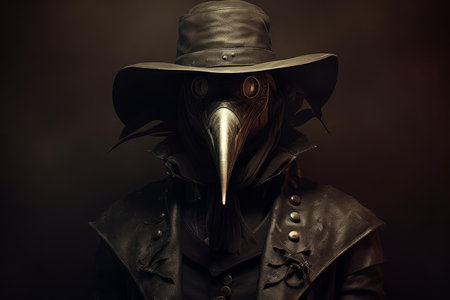 Dramatic Plague doctor medieval portrait. Pandemic people. Generate Ai