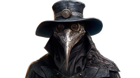 Portrait of a plague doctor. high-quality costume. Isolated on a white background. epidemic and pandemic concept. AI generated.