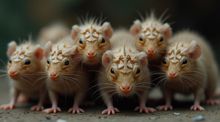 Group of Mice in Dramatic Red Light Among Flowers
