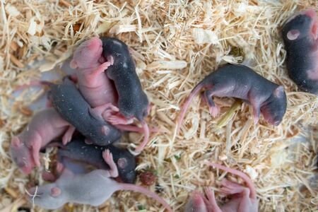 Photo of little brown and black laboratory mouses