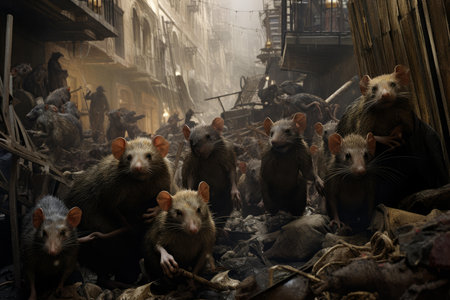 Infested Rats street dirty. Cute pet rodent. Generate Ai
