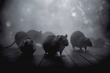 Rats in dark room fog. Animal mouse. Generate AI