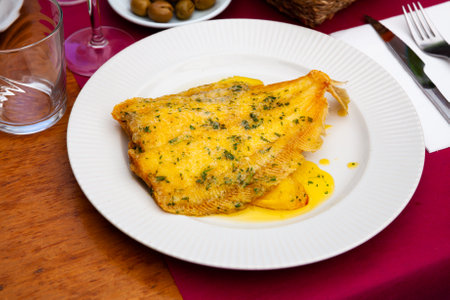 Lenguado meuniere in lemon sauce. French cuisine