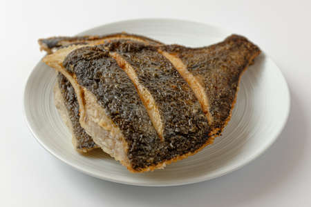 Grilled flounder fish on white background