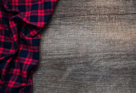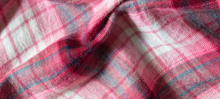 Plaid in a cell as a background image. Blank checkered fabric texture. Top view. Copy, empty space for text.