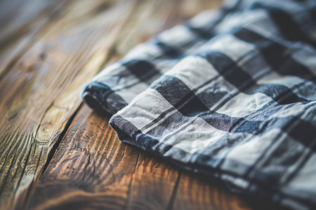 Plaid Wool Blanket on Wooden Surface. generated by ai