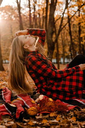 Fall picnic ideas, autumn day off, solo picnic, Self Date, Things to Do by Yourself. Alone young woman enjoying life in the autumn park