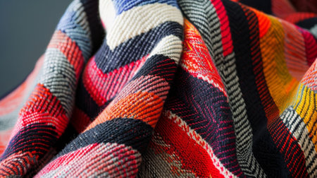 This image showcases a stack of colorful wool blankets featuring intricate textures and patterns, perfect for creating a cozy atmosphere in any home.