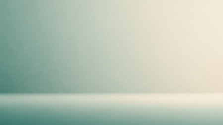 A minimalist studio background with a faint gradient from teal to cream, showing a subtle floor shadow.