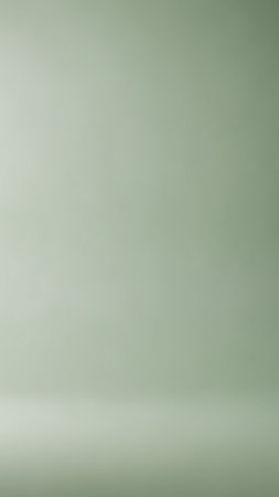 A softly lit empty studio with a smooth gradient of muted sage green, transitioning gently to the floor.