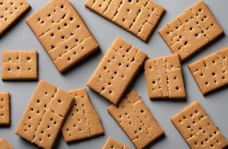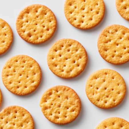 A visually appealing composition featuring crunchy savory crackers in a simple arrangement. Perfect for culinary projects, recipe development, and food photography.