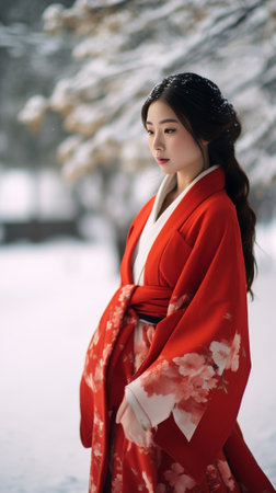 shot of a woman wearing traditional japanese clothing, created with generative ai
