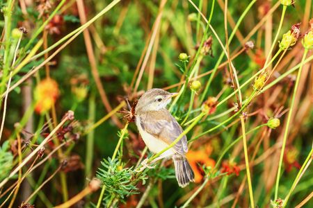 Great Reed Warbler (Acrocephalus arundinaceus).Wild bird in a natural habitat.