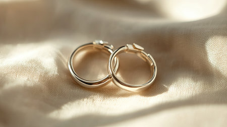 This captivating image features two elegant gold rings resting on a soft fabric background, highlighting the simplicity and beauty of fine jewelry.