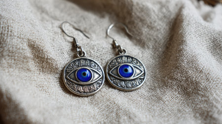 Discover these elegant silver earrings featuring a captivating blue eye design. Perfect for fashion lovers seeking unique accessories or meaningful gifts.