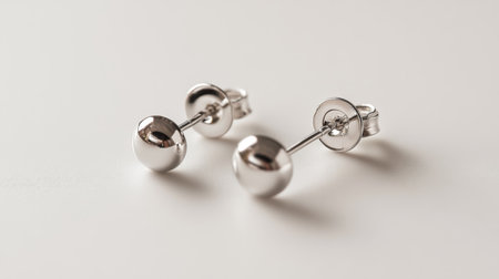A close-up of minimalist silver stud earrings on a clean, white background, highlighting their sleek and modern design for a chic and understated look.