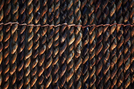 Wicker texture in dark brown tones. Bound stripes made of artificial plastic material.