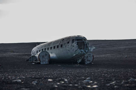 VIK, ICELAND – September 12, 2017: Aircraft wreckage in Iceland (Douglas R4D Dakota DC-3 117 from the US navy).