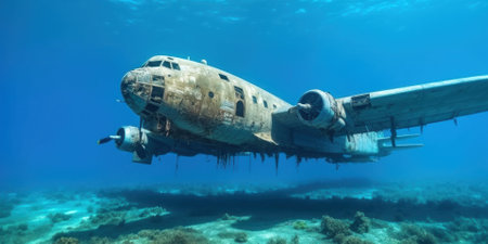 sunken transport airplane, with its wreckage lying on the ocean floor. Generative AI